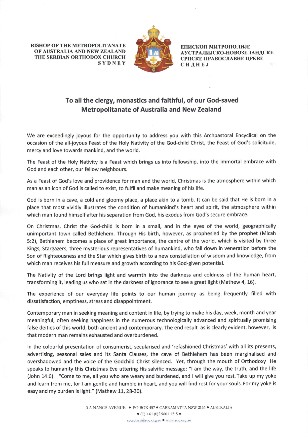 Christmas Epistle of His Grace Bishop Siluan of Australia and New Zealand 6 January 20196 January 2019 Share this: Click to share on X (Opens in new window) X Click to share on Facebook (Opens in new window) Facebook Click to email a link to a friend (Opens in new window) Email Related