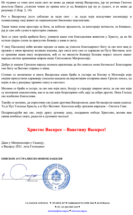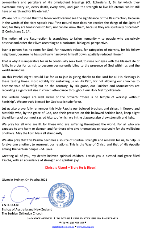 Васкршња посланица Епископа Силуана 1 May 2021 Share this: Click to share on X (Opens in new window) X Click to share on Facebook (Opens in new window) Facebook Click to email a link to a friend (Opens in new window) Email Related