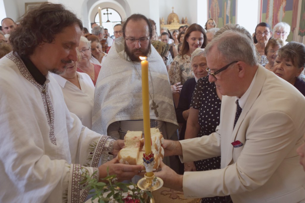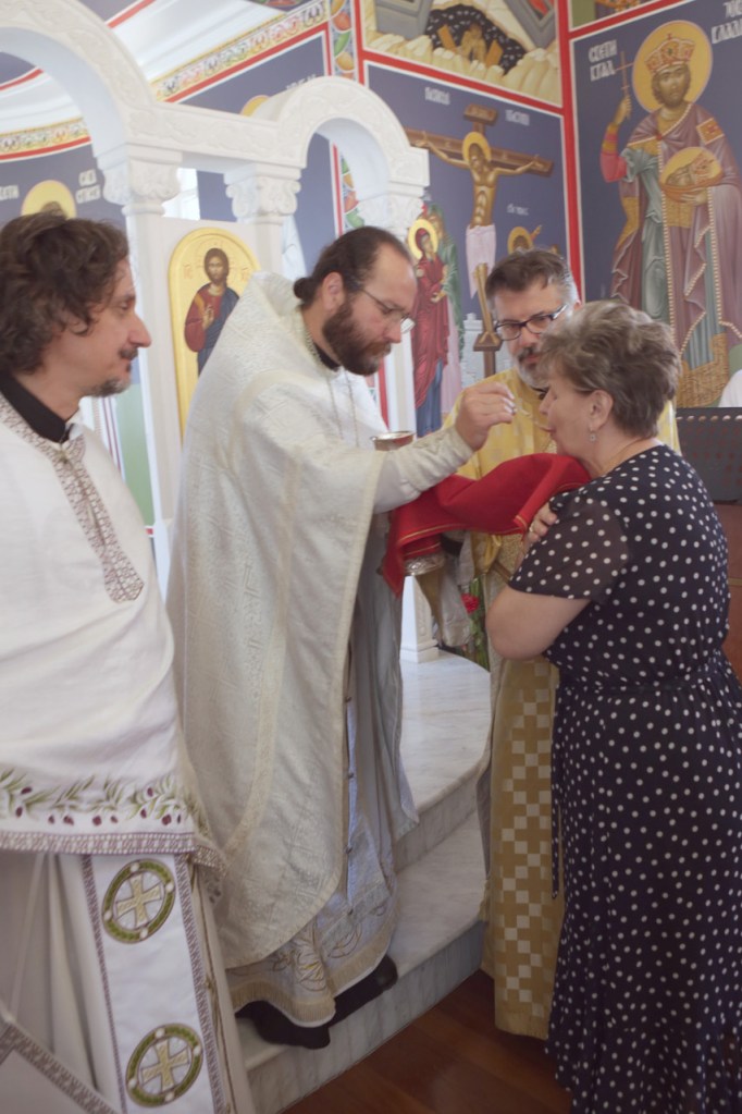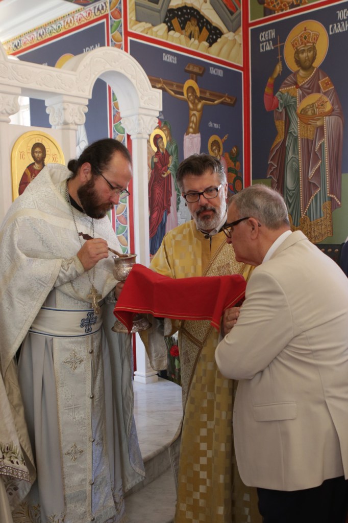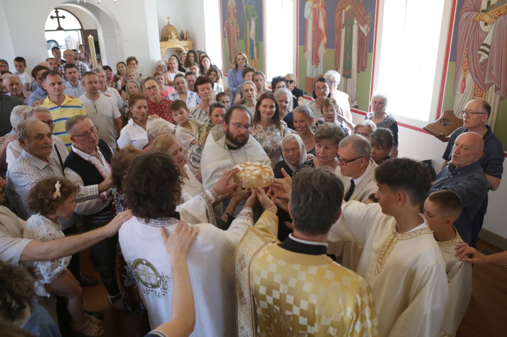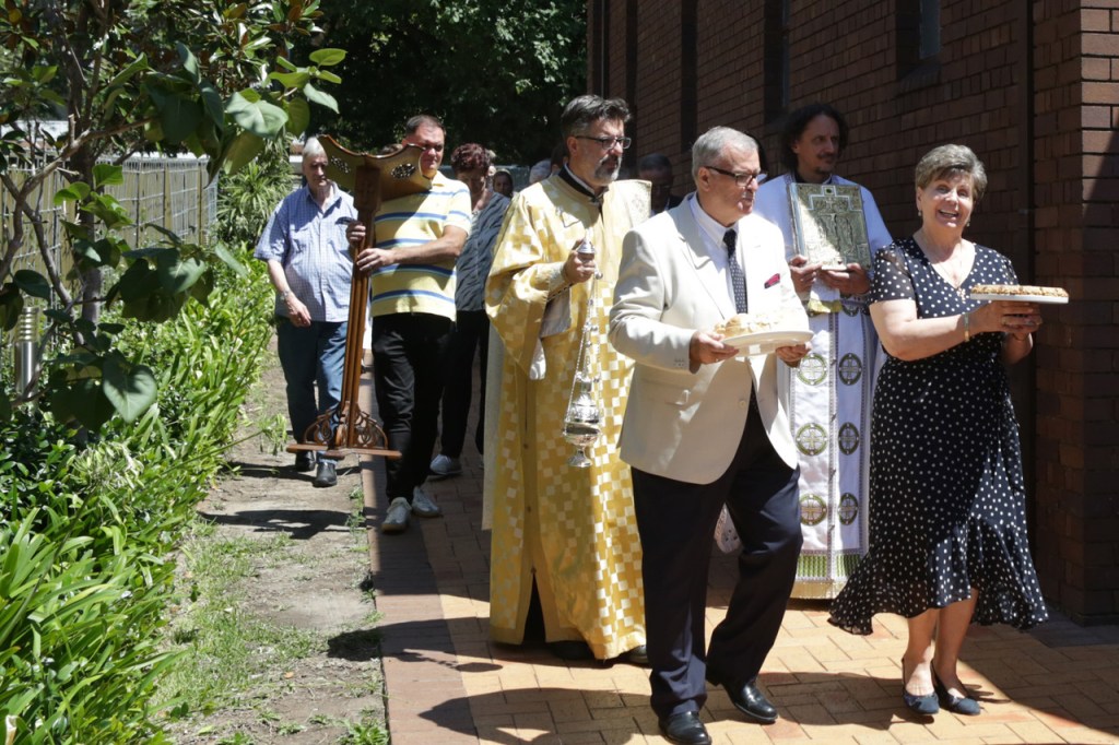 По свршеној Литургији, крунисањем распеване крсне литије освећена су славска знамења са овогодишњим домаћинима – породицом Братислава и Снежане Спасескии несебичним приложницима Флемингтонске светиње.