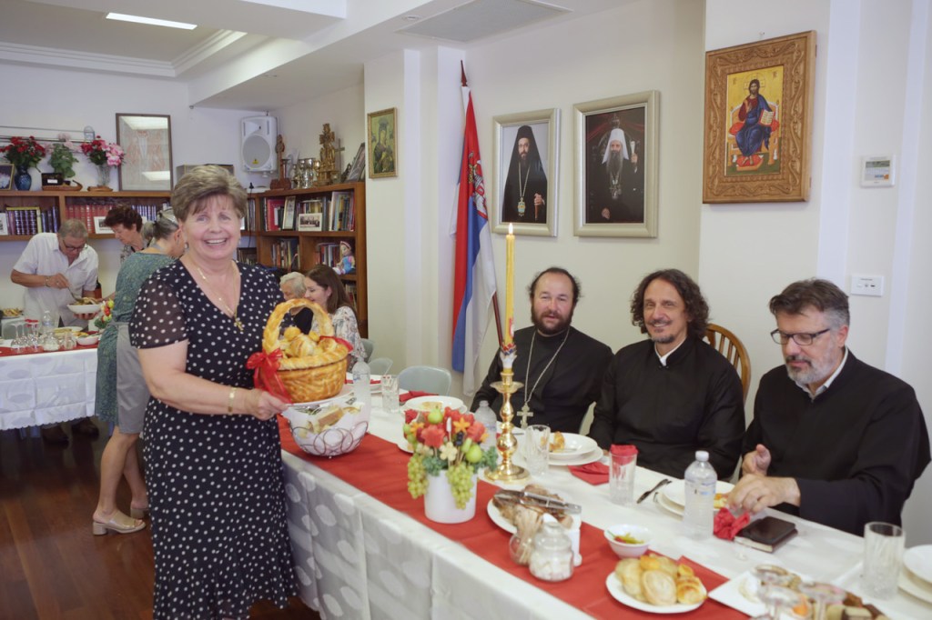 Љубављу и трудом Снежане и Братислава и чланица Кола српских сестара Мајка Југовића припремљена је традиционална српска трпеза у парохијском дому. Благодаримо свим приложницима који су својим несебичним трудом и даровима помогли у прослави. Посебну захвалност упућујемо Вељку Антонићу и Драгану Карашићевићу. И овом приликом традиционално је сабран и прилог за наш напаћен верни народ на окупираном Косову и Метохији.